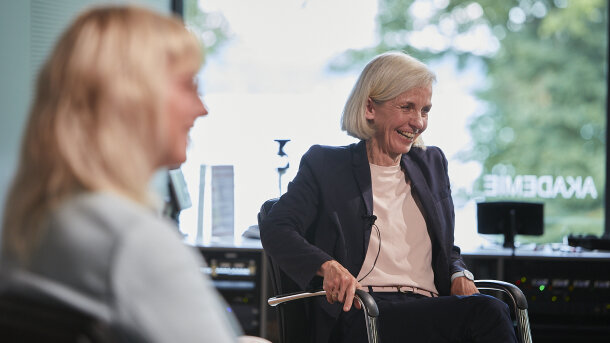 Auf dem Podium - Moderatorin Frau Sybille Giel und Frau Prof. Dr. Ursula Münch